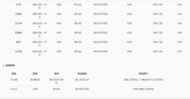 队员:彭松颖(软件工程2019级本科)、吴昱翰、朱迪、陈奕君、于雪儿、刘美云(软件工程2019级本科)、潘艳(审计2019级本科)、田小锋(软件工程2019级本科) 、陈梦圆(物联网工程2019级本科)、鲍涛(软件工程2019级本科) 、罗博(软件工程2019级本科) 、李睿阳(软件工程2019级本科)、余俊雄(软件工程2019级本科)、郭健峰(软件工程2019级本科)。