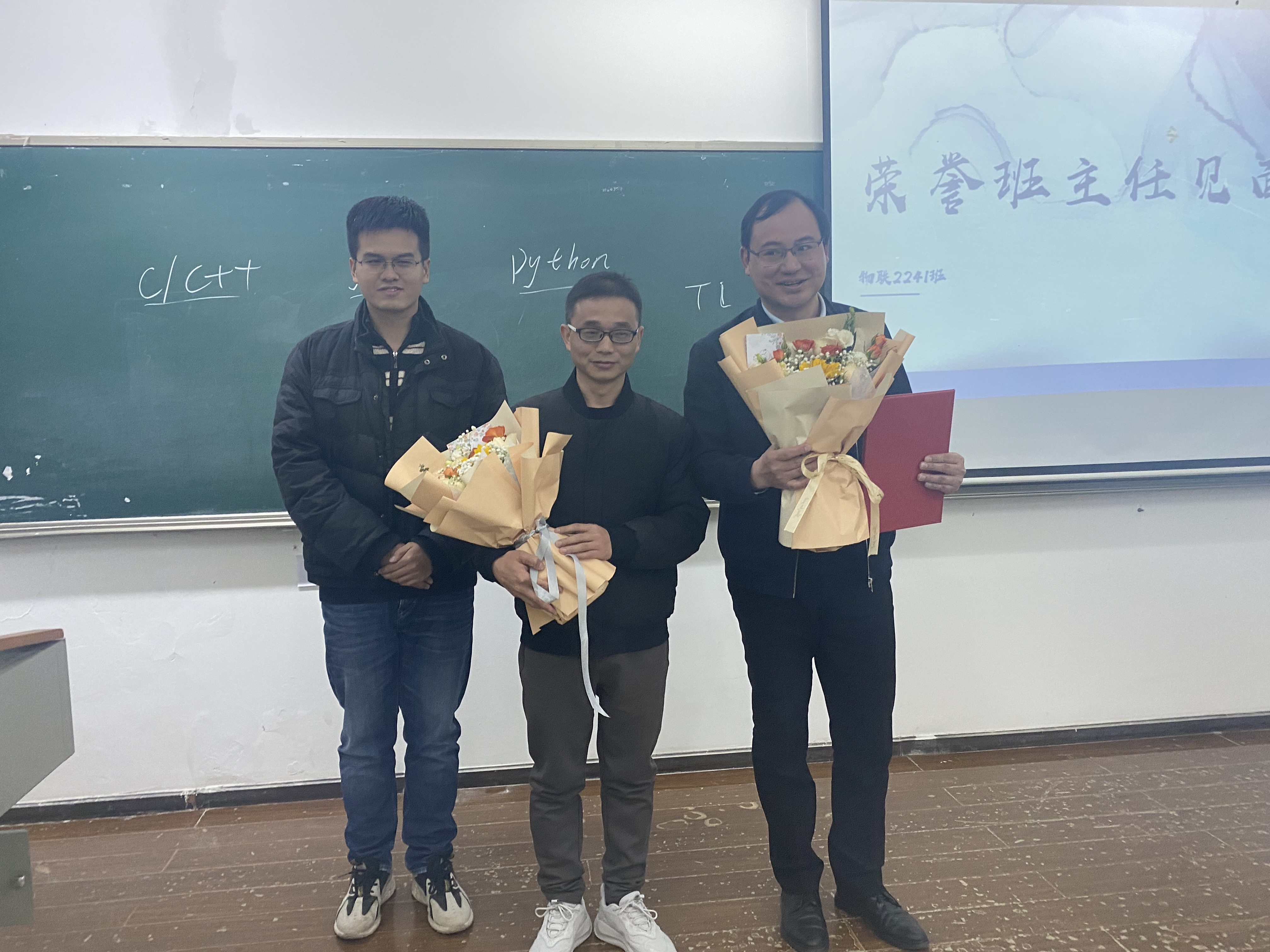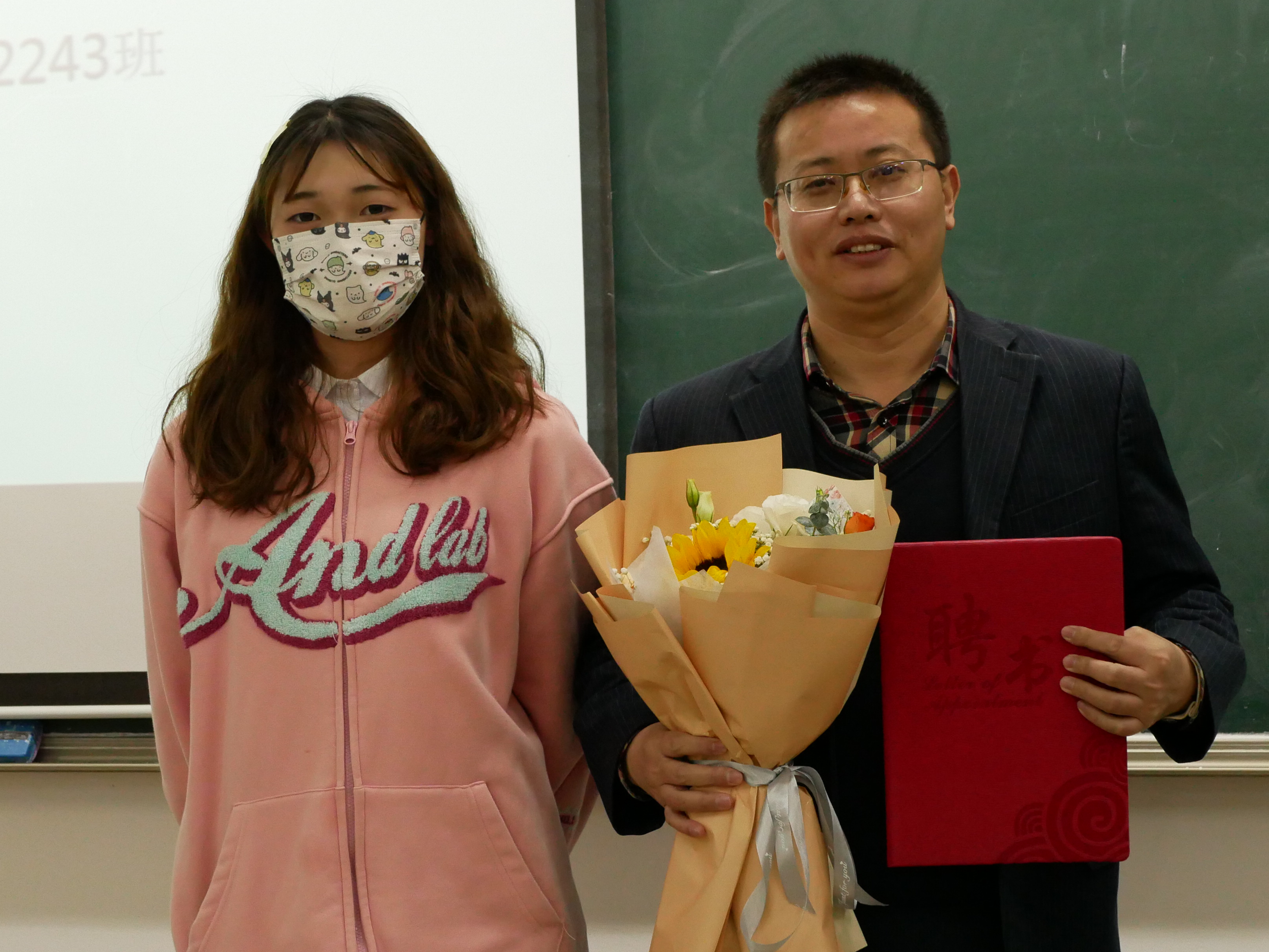 最后,各班分别为荣誉班主任举办授聘仪式,同学们热情的为荣誉班主任献上鲜花,由衷表达了同学们对荣誉班主任情系母校,关爱学子的感谢。