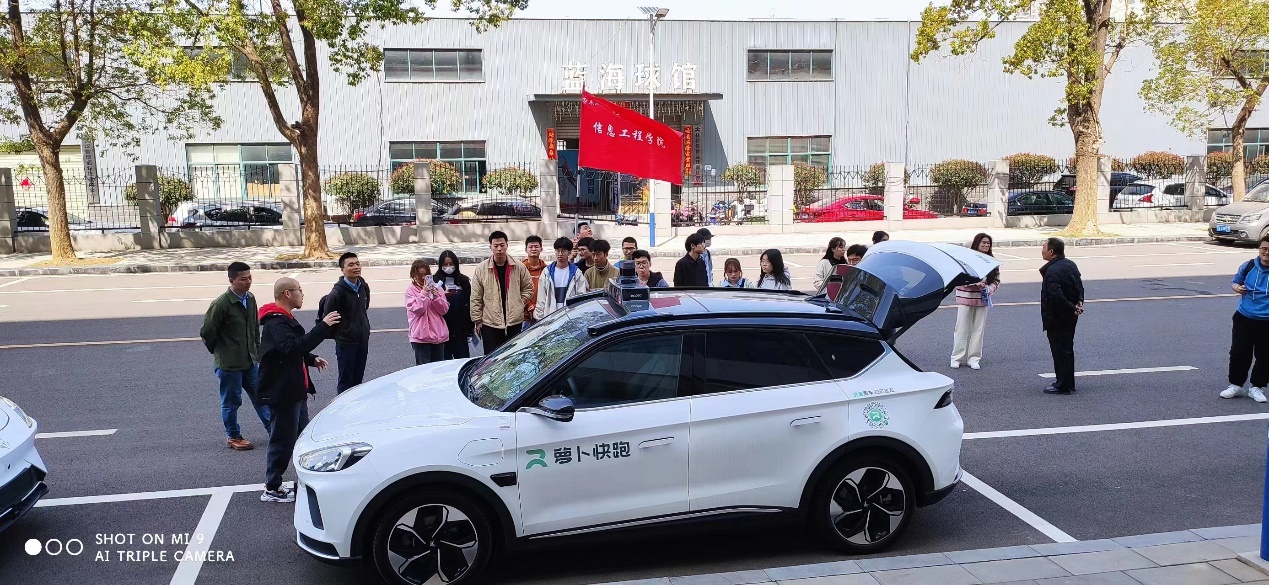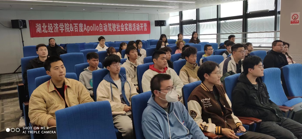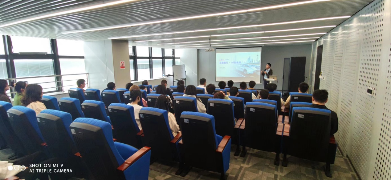 参加活动的师生从学校出发,来到位于武汉市汉阳经开区的“武汉经开人工智能科技园“,聆听了关于百度Apollo自动驾驶技术发展情况和前沿技术的两场报告,并参观了“萝卜快跑”平台的远程云仓,与百度Apollo无人驾驶车进行了零距离亲密接触。通过与相关技术工程师和运营主管的深入交流,师生们对无人驾驶技术、百度Apollo无人驾驶车的发展历程和现状、武汉市目前的无人驾驶网约车的运营情况和未来规划等有了全面深入的了解。