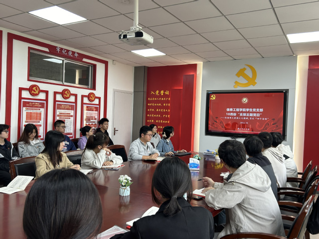 本网讯(通讯员:朱锦煇)10月25日,信息工程学院学生第四党支部在知行楼A-328开展十月主题党日活动,会议由党支部书记朱锦煇主持。
