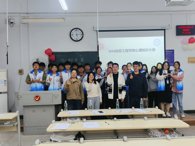 本网讯(通讯员:程小蝶)2024年10月31日下午15:00,我院大学生心理健康协会在二号教学楼组织开展了2024-2025学年心理知识大赛。我院辅导员程小蝶、李国瑞、朱锦煇、梁欣蕊担任评委,大学生心理协会工作人员、共计15支参评队伍参与本次活动。