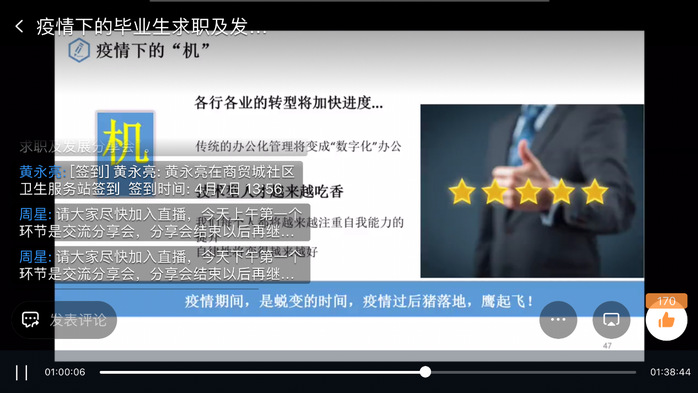 针对因疫情防控原因造成毕业生无法到企事业单位开展毕业实习,而信通学院工科专业毕业生迫切希望通过毕业前项目实践提升核心竞争力的现实需求,学院积极应对,院领导班子多次召开视频会议,认真研讨,多方协调,积极寻求线上实习实训的可行性方案,有针对性地制定疫情期间《信息与通信工程学院2020年线上集中毕业实习工作方案》,指导师生进行线上毕业实习。主动联系校企合作单位—武汉中软国际有限公司,聘请项目经验丰富的行业专家,以直播形式进行系列讲座,实现校企双方实时互动、信息共享的沟通机制。学生在实习中分组立项,远程实时沟通,按照公司项目开发模式进行全真模拟,培养学生团队协作精神,为学生毕业就业打下坚实基础。