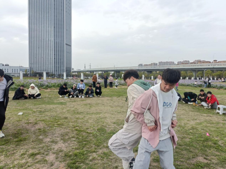 随着春天的到来,大地完全被绿化了,在和煦的春光中,全体同学在草坪集合,为即将开始的主题班会做准备。本次活动共准备了三个游戏: “花开花落”、“蒙眼吃香蕉”“夹气球跑”。此次游戏活动十分考验参与者的默契程度和信任度,培养了同学们的集体协调性;通过完成游戏,不仅增进了同学之间的相互了解,也使同学们互相包容,互相信任,拉进了彼此的距离。