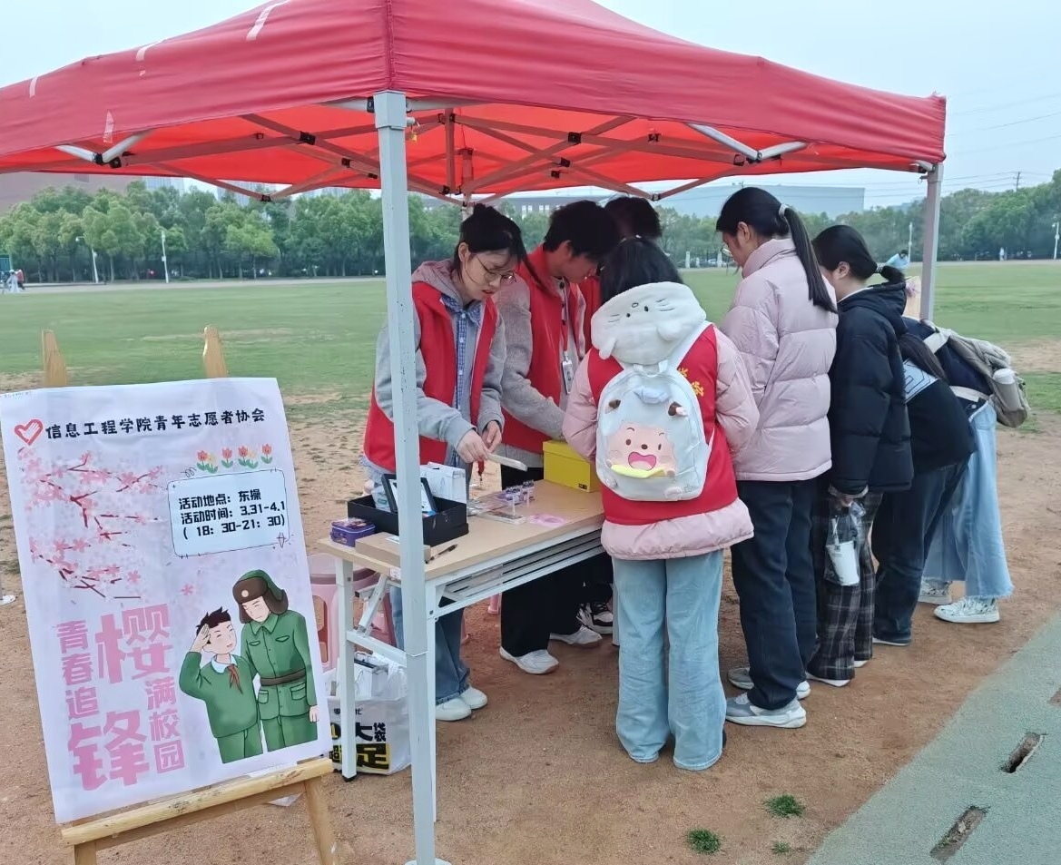 本网讯(通讯员:陈聪颖 何苏怡)2025年3月31日至4月1日,我院青年志愿者协会在东区操场举办了“青春追锋,樱满校园”的志愿服务活动。