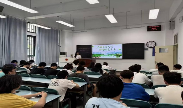 我校“经叹号”宣讲队队员以“共筑生态文明,共铸绿色未来”为主题,结合湖北生态建设成果与挑战,用数据和故事讲述“生态优先、绿色发展”的实践路径,呼吁团员从“校园低碳生活”做起,践行生态责任。宣讲队队员还现场发起“绿色打卡挑战”,鼓励大家用行动守护荆楚绿水青山。(撰稿:潘志国审核:陈珊珊)