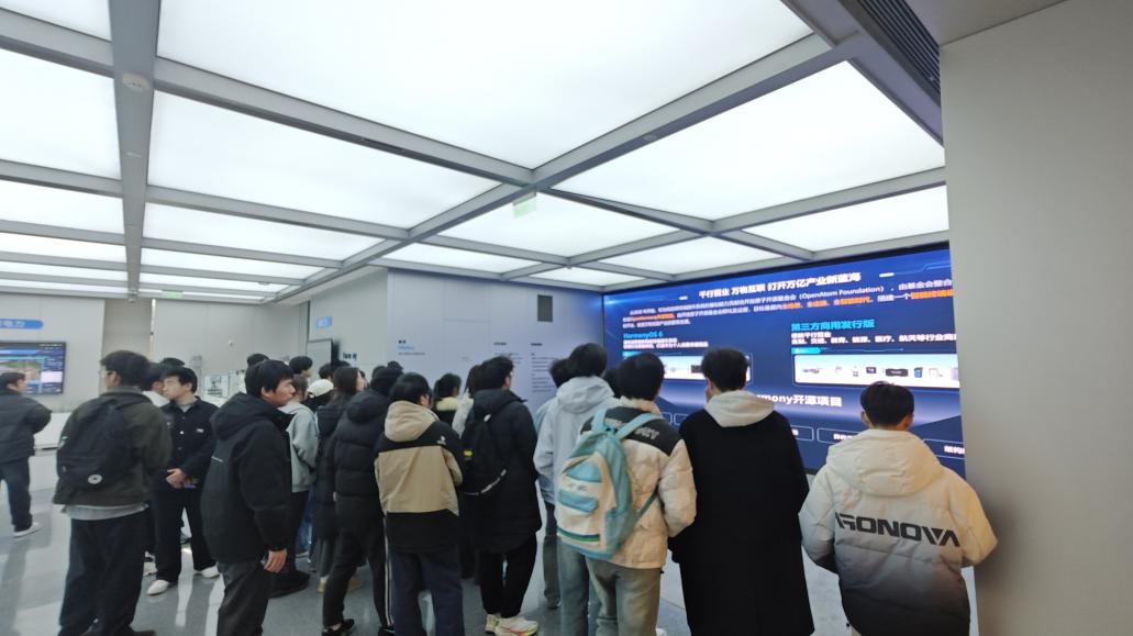 在鸿蒙生态(武汉)创新中心的展厅内,师生一行通过系统的参观与讲解,全面了解了鸿蒙生态的演进历程、分布式架构设计理念以及“一次开发、多端部署”的核心技术优势。重点学习了对构建自主可控数字生态的战略意义,及其在万物互联时代下所扮演的关键角色。实习过程同学们深入了解了鸿蒙生态在国民经济关键领域的深度融合与创新实践,鸿蒙凭借其分布式、模块化、高安全性的特点,已在多个行业(智慧电力、智慧医疗、智慧工业、智慧金融等)形成标杆性解决方案。实习活动过程中,企业讲师介绍了与鸿蒙生态发展相匹配的官方人才认证体系,结合认证清晰的职业能力评价标准,为学生规划专业学习路径、对标产业需求提供了明确指引。