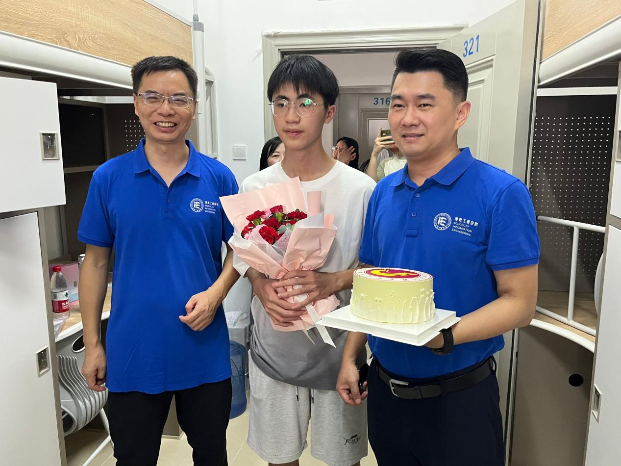 为了进一步让新生了解我院学科特色,激发新生学习兴趣,我院在迎新点位组织了“我和我的第一行代码”活动,新生通过输入自己的姓名来获取独属于自己的第一行代码,提前感受工科文化氛围。新生入学报到当天,恰逢计科2341班吴锐铭过生日,我院领导深入寝室,为该生送去生日蛋糕,陪其度过“入学的第一个生日”。