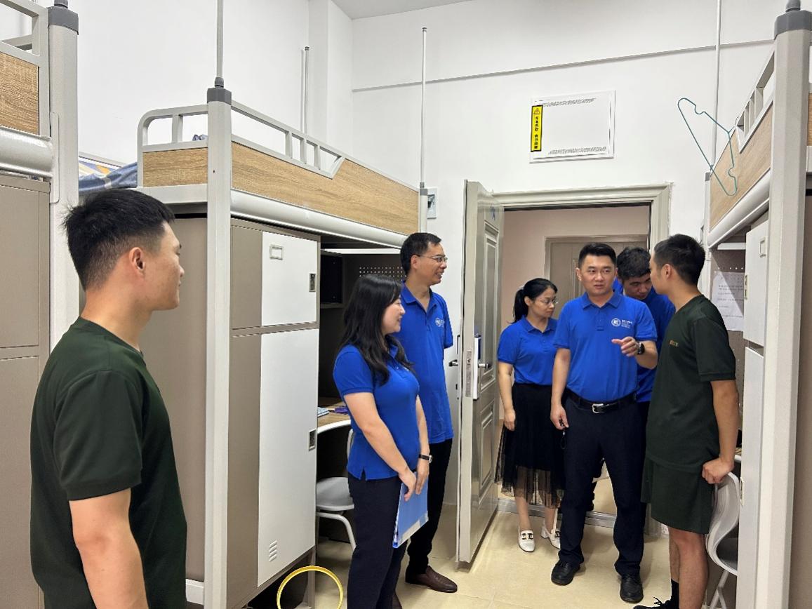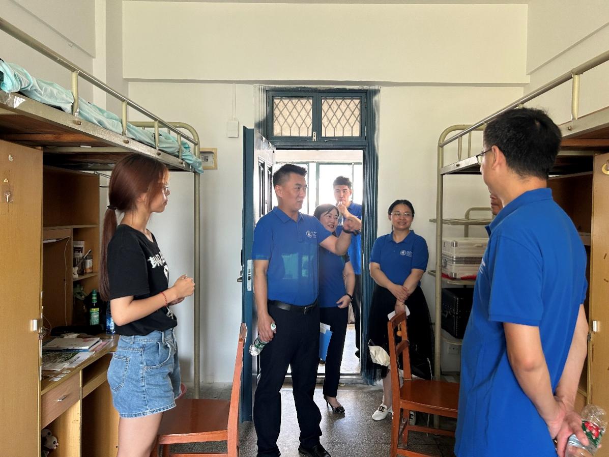 (通讯员李心怡 鲁琪)为深入了解2023级新生宿舍生活情况,帮助同学们更好地适应大学生活。9月9日新生报到第一天上午,学院院长田浩、党委书记李刚、党委副书记陈珊珊、副院长李红艳、副院长吕植成、和辅导员李心怡一行前往枫五、桔四学生公寓走访慰问2023级新生。