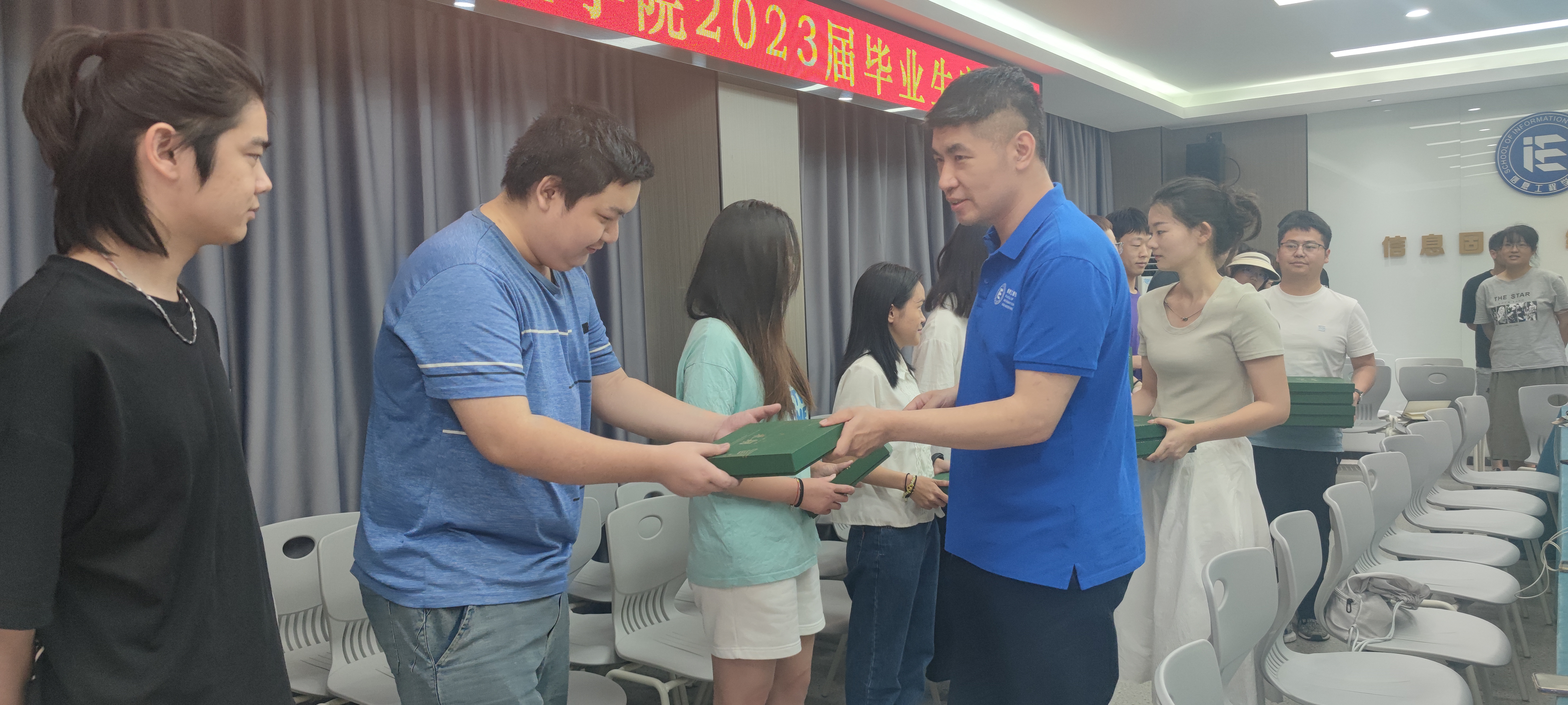座谈会最后,学院领导和各系教师代表为毕业生代表送上精心准备的纪念礼物,祝福所有毕业生未来可期,全体师生留下宝贵的合影。