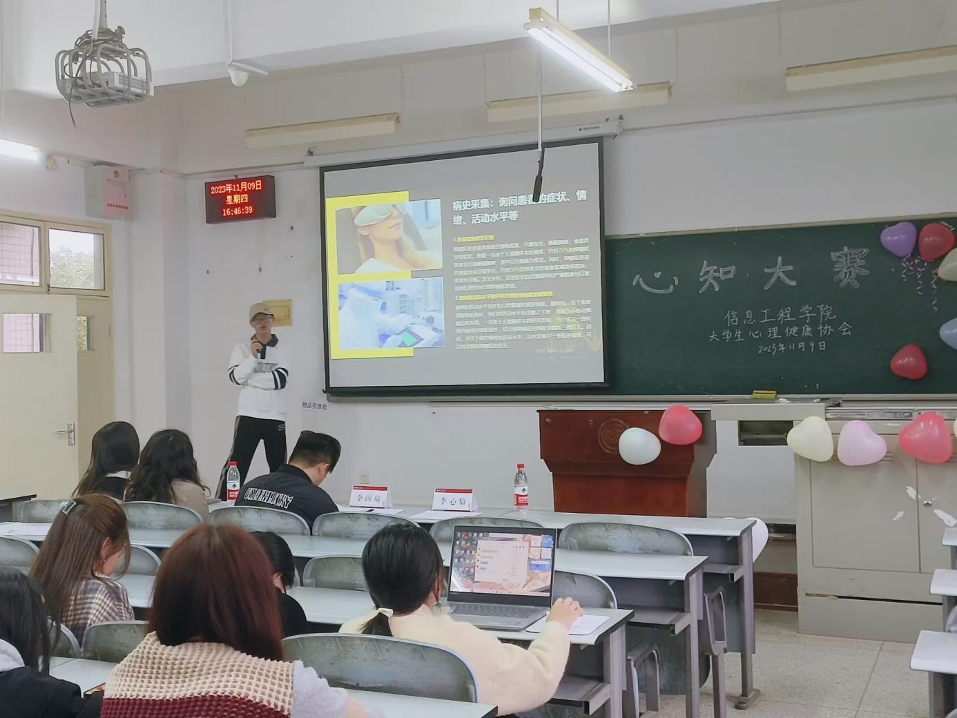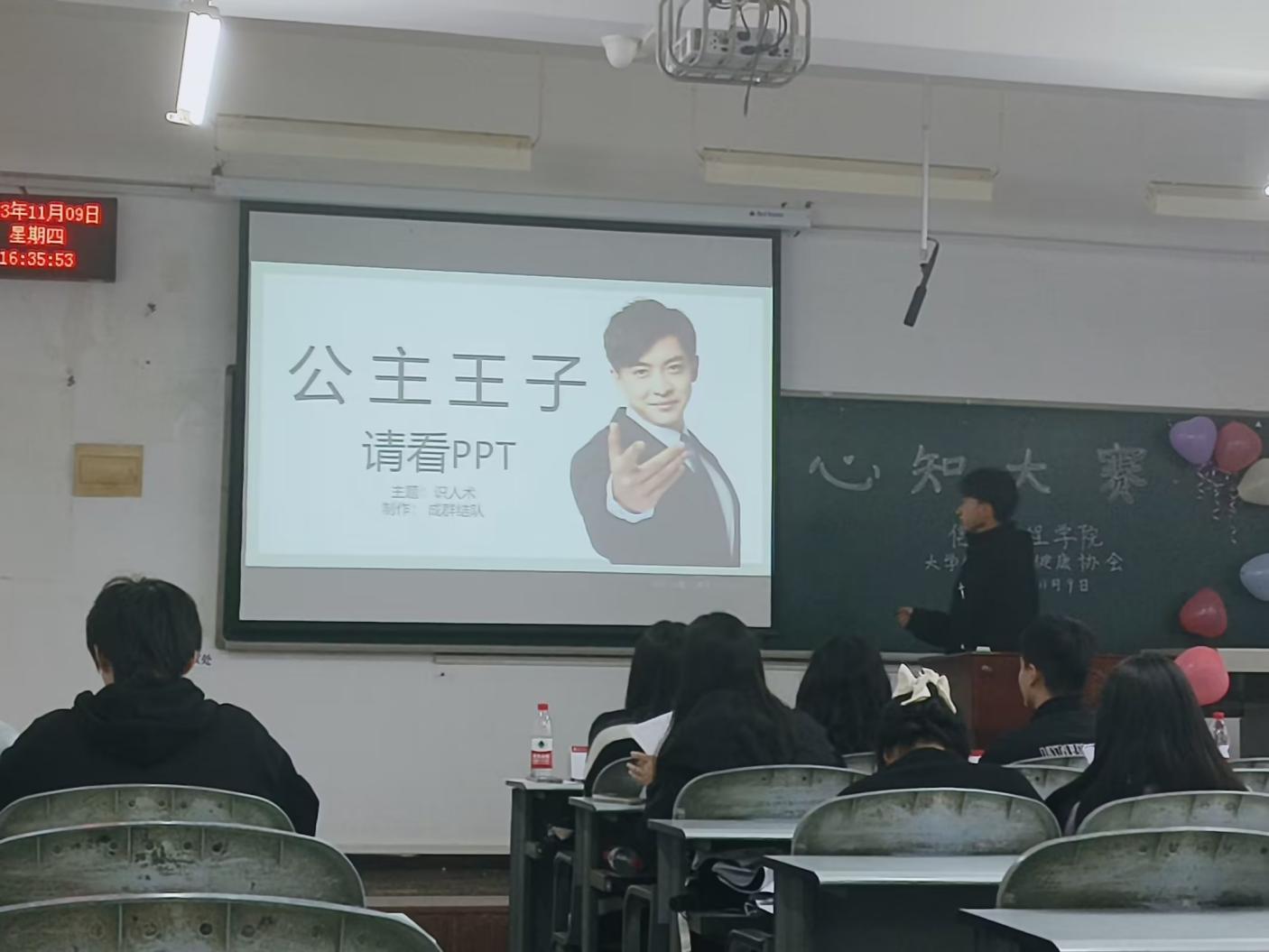 本次大赛主要分为两个部分:心理知识抢答与PPT宣讲。在心理知识抢答部分,由参赛队伍选出1-2个人在比赛教室就坐,针对20道关于心理问题的选择题,在微信小程序上分别抢答并由记分员统分。PPT宣讲部分由17支队伍就精神内耗、容貌焦虑、恋爱心理学等多种心理学知识话题进行宣讲,评委老师从PPT制作、汇报表现、汇报时间三个方面进行打分,记分员按照评分规则核算得分,并由评委当场公布分数。