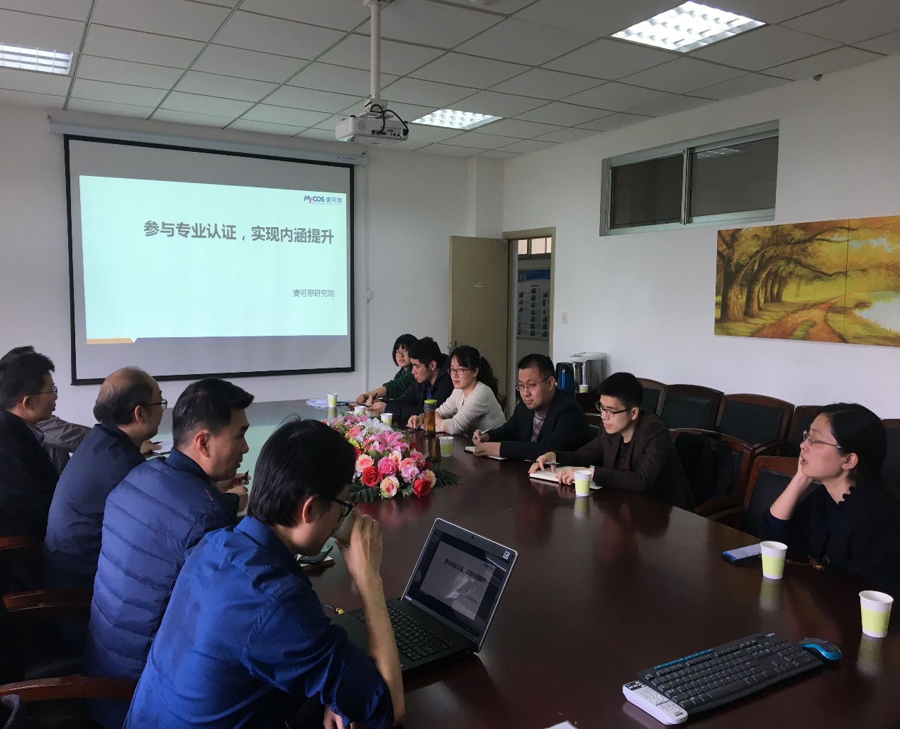 麦可思研究院资深研究员谭朋介绍了工程教育专业认证流程与环节、建设事项等内容,并逐一回答了学院提出的专业建设需求,双方进行了深入探讨和交流。