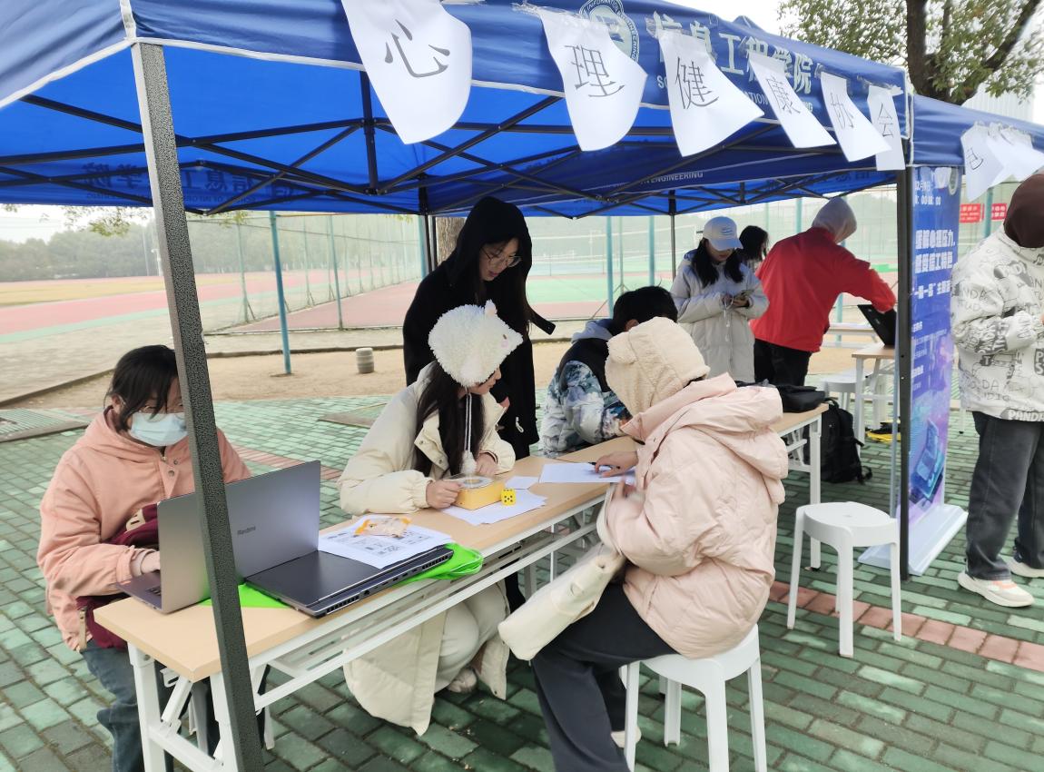 本网讯(通讯员: 周晶 夏霁)2023年12月14日,由我院心协和电协精心策划的“一院一品”特色活动在东区操场举行。这次活动通过一系列有趣的小游戏,如数独、听歌识曲、华容道、操纵小车等,让同学们缓解心理压力,体验信工特色。