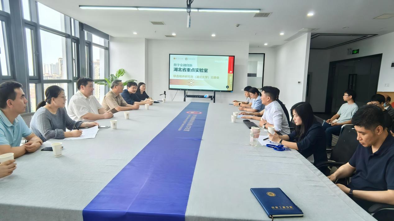5月17日,为进一步推动湖北大学研究生联合培养工作,深化校际合作,湖北大学计算机学院党委书记秦明君、院长张䶮一行到访数字金融创新湖北省重点实验室(以下简称“实验室”)交流调研,共商研究生联合培养合作。我院领导班子出席会议,院长田浩主持会议,全体研究员参加会议。